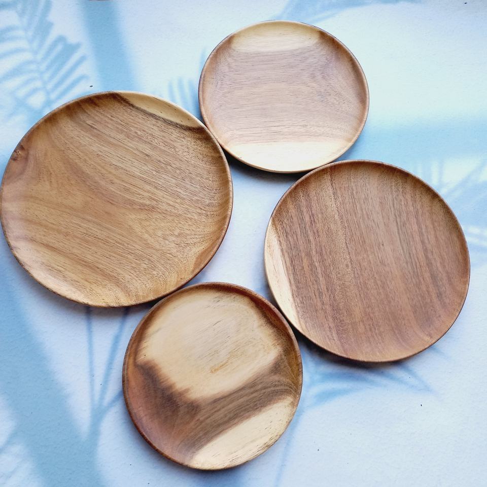 Plato redondo Natural personalizado para el hogar, bandeja de madera para servir café de Acacia y nogal, hecha en Vietnam, respetuoso con el medio ambiente