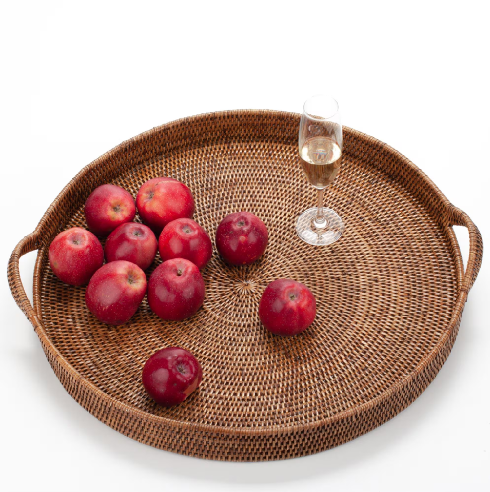 Bandeja Redonda de Ratán Natural para Servir Aperitivos en Restaurantes, con Logotipo Personalizable, 2 Piezas, Diseño Tejido