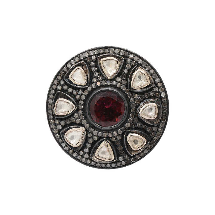 Item Name:Pink Tourmaline & Polki Diamond Gemstone Silver Ring