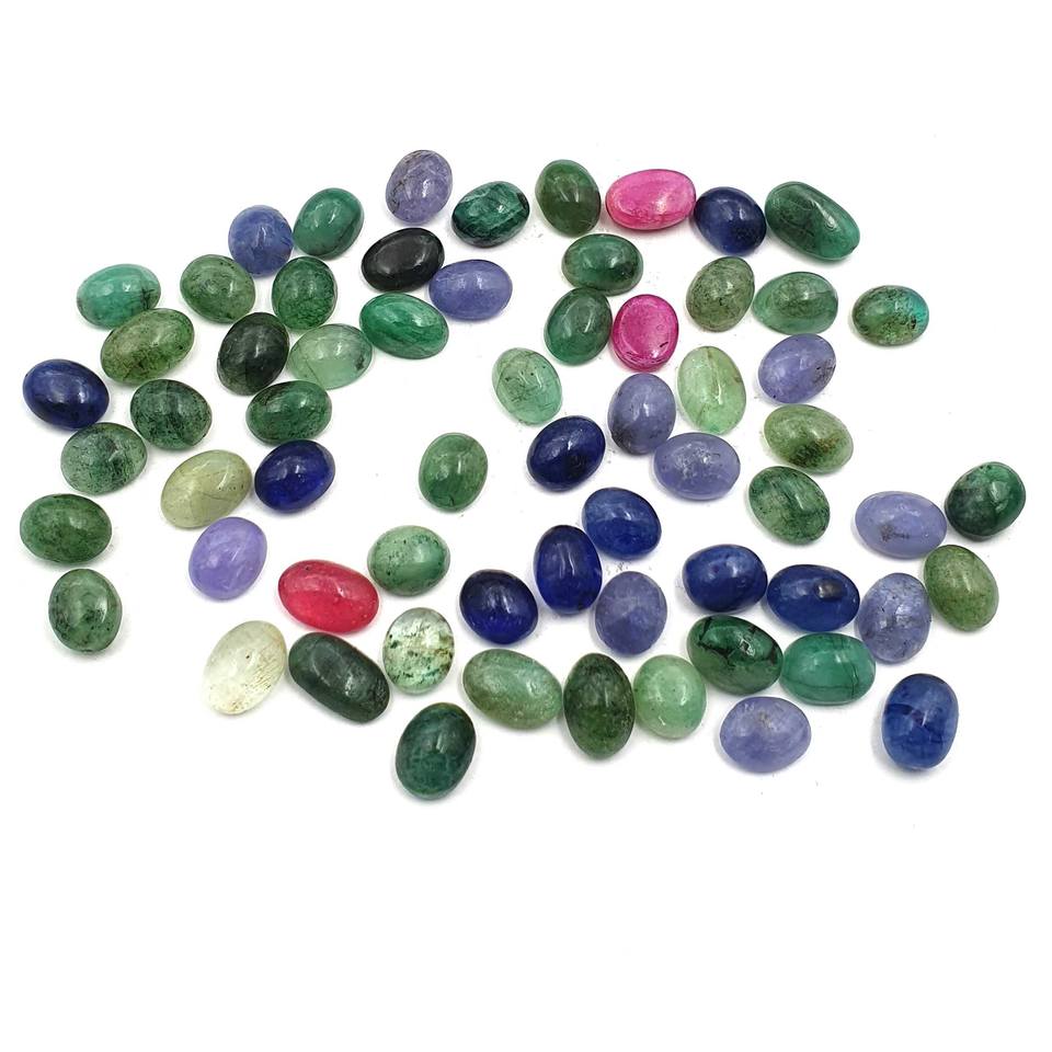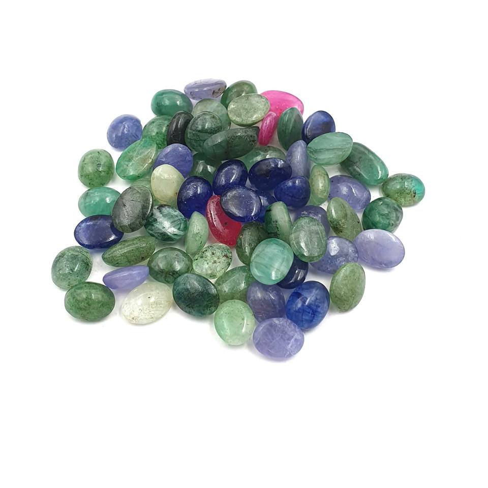 Cabujón de Piedras Preciosas Sueltas Mixtas de Rubí, Esmeralda y Zafiro Naturales, 28 Piezas, 6*7-6*11 mm, 50 CT, Cabujón de Rubí, Esmeralda y Zafiro