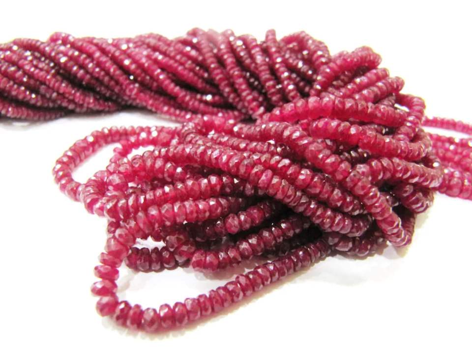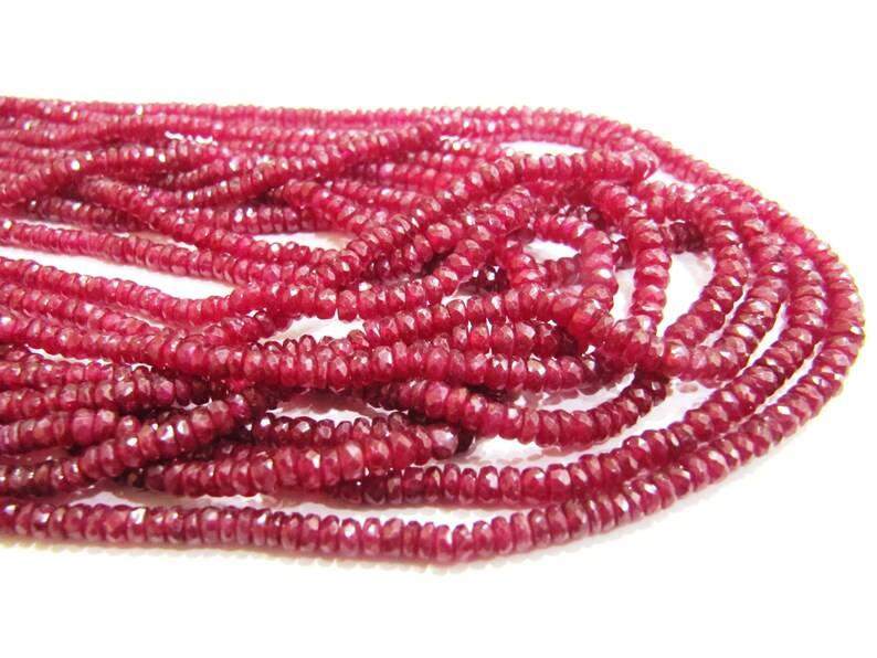 Cuentas de rubí natural Rondelle facetadas de alta calidad de 3 a 4mm que se venden por hebra de 8 pulgadas de largo