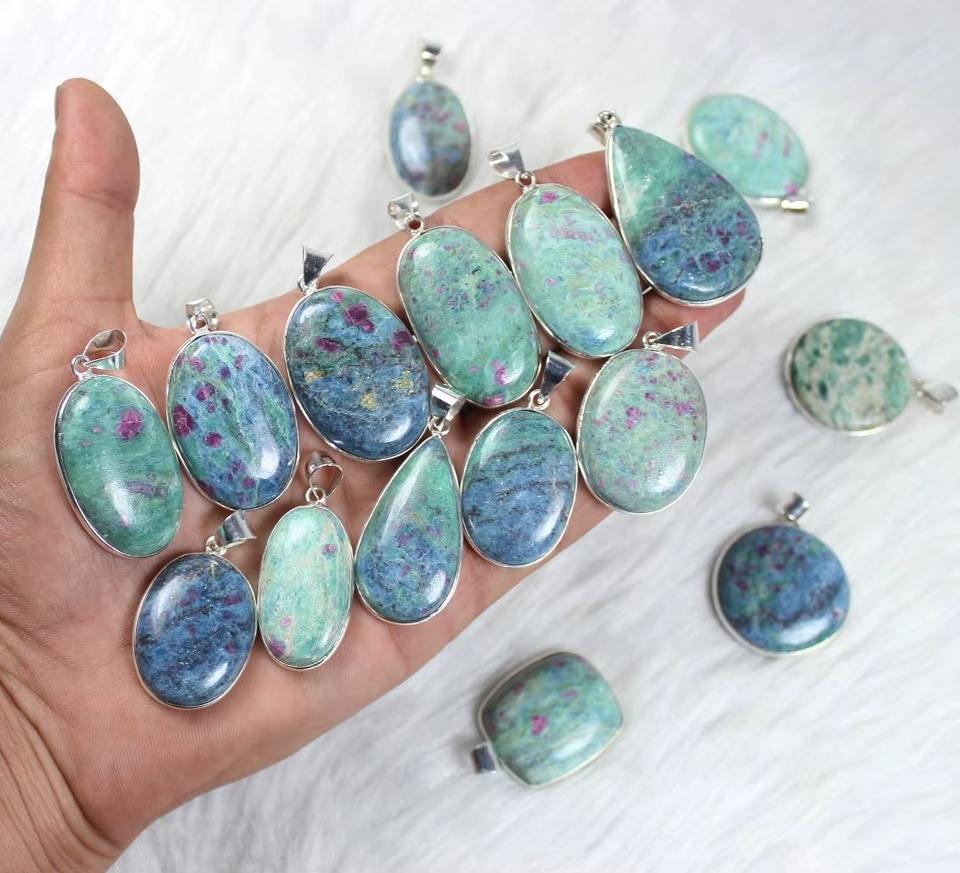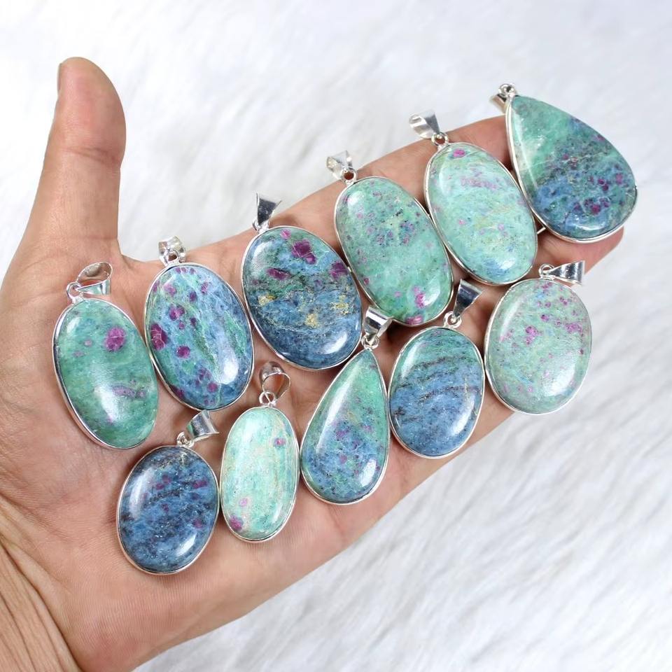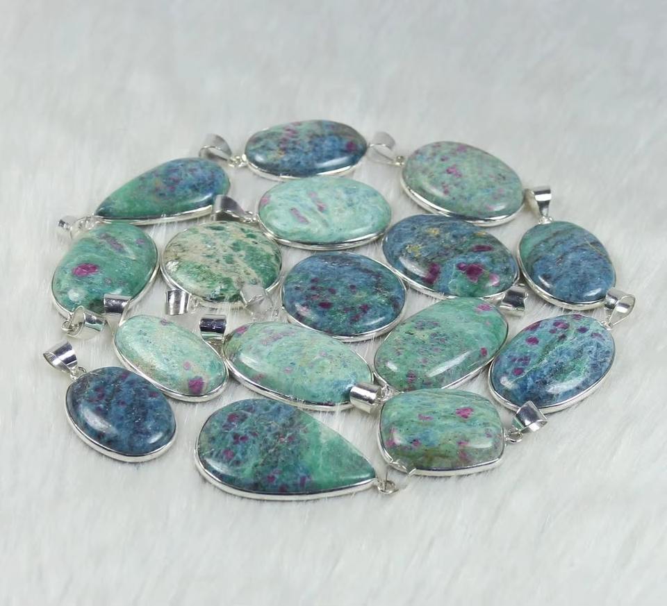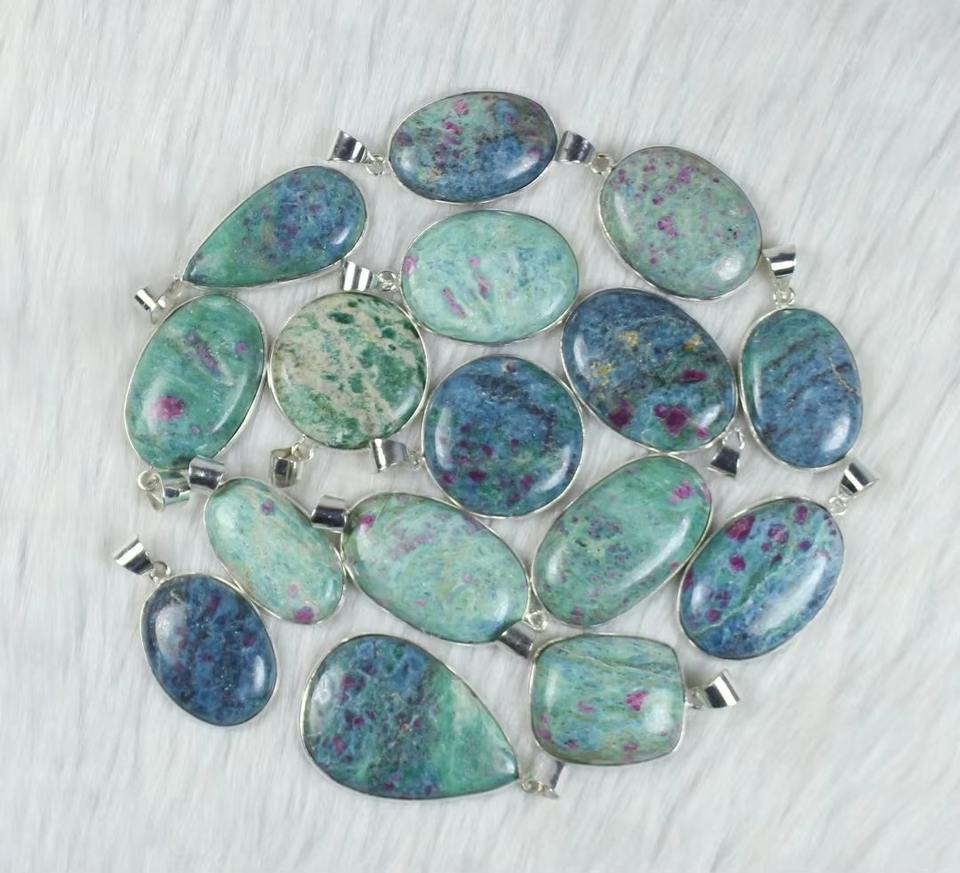 Nombre del Producto:Colgantes de rubí en fuchsite bañados en plata