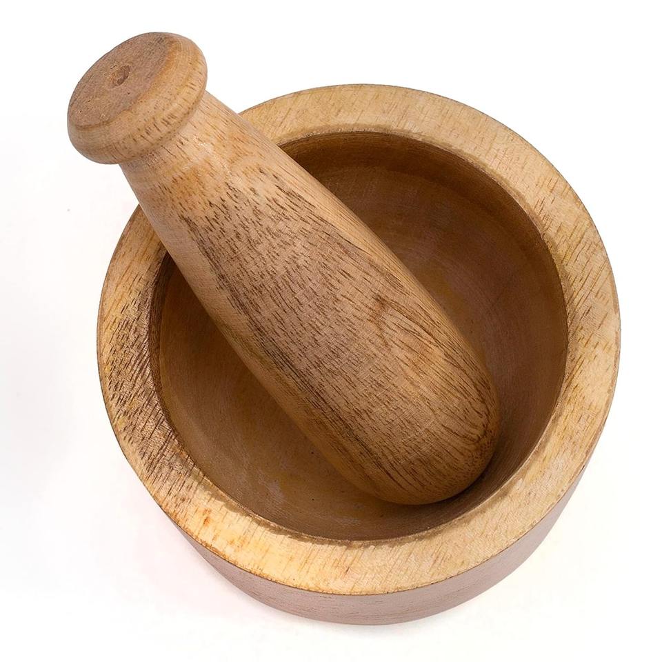 Molinillo Manual de Hierbas y Especias de Estilo Rústico Natural, Mortero y Pilón de Madera para Picar y Triturar en la Cocina