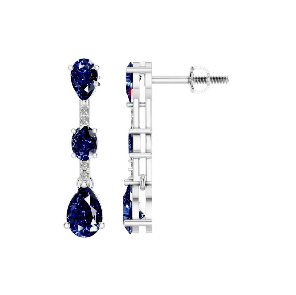Elegantes pendientes naturales con zafiro en forma de pera y piedras preciosas ovaladas