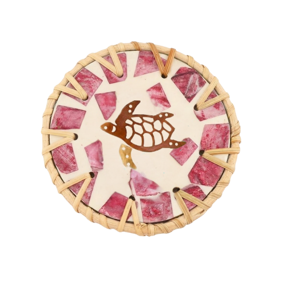 Posavasos de Concha Marina Natural con Borde de Ratán Sostenible - Tapete Ecológico Resistente al Calor - Decoración de Mesa Estilo Boho Tropical