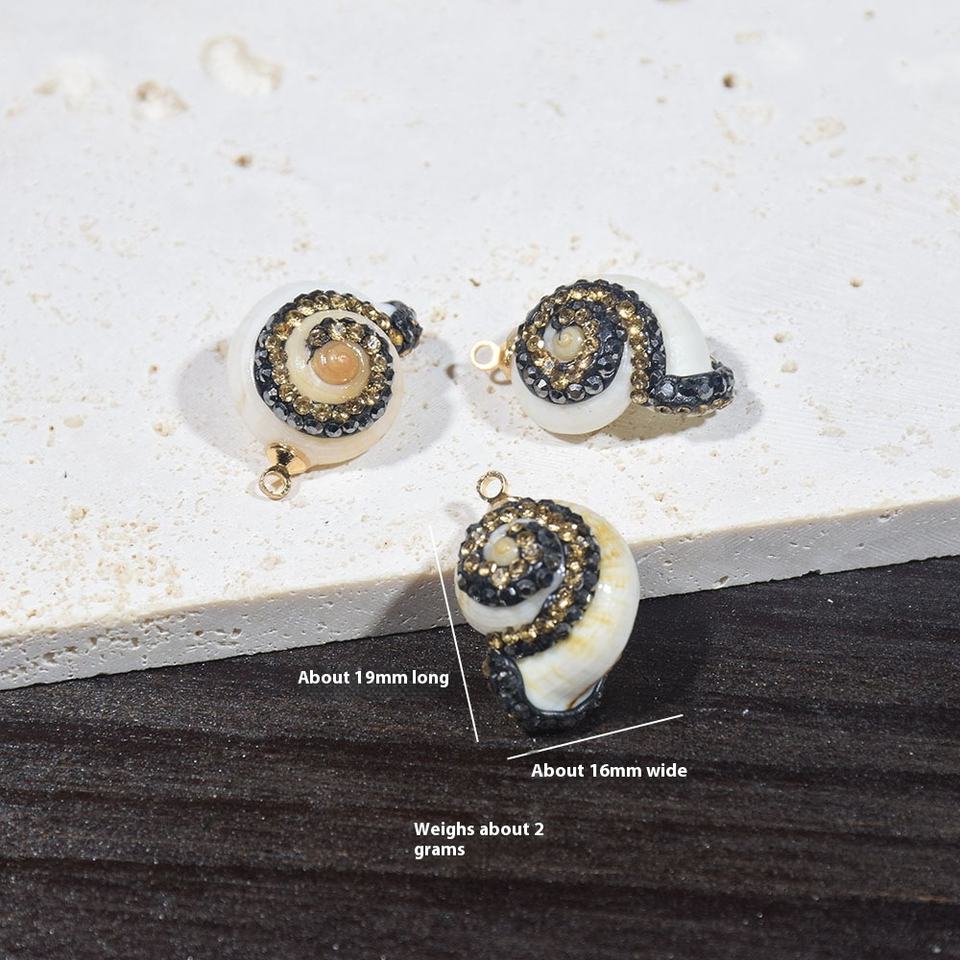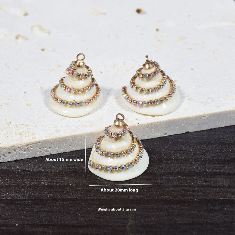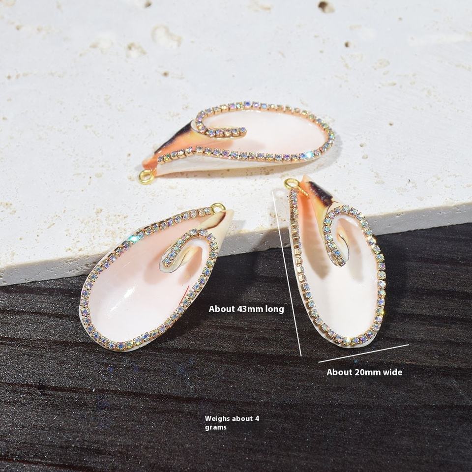 Colgante de concha marina natural con acentos de diamantes coloridos estilo océano DIY collar joyería para mujer