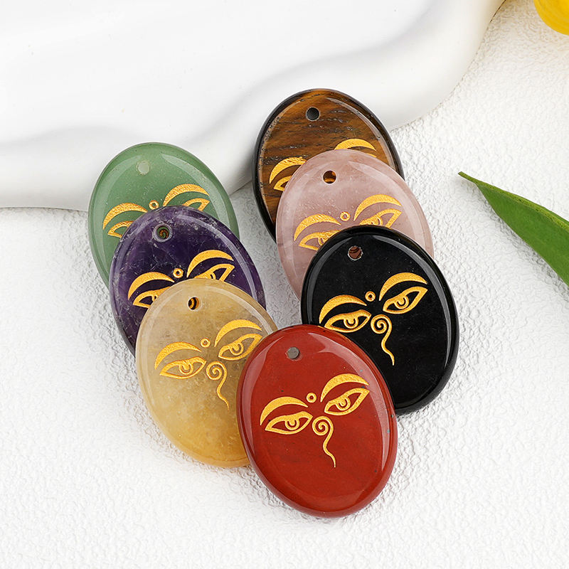 Amuleto de Protección de Piedra Semipreciosa Natural, Amuleto de Tercer Ojo, Amuleto de Ojos que Todo lo Ven, Talismán de Positividad de Buda, Colgante