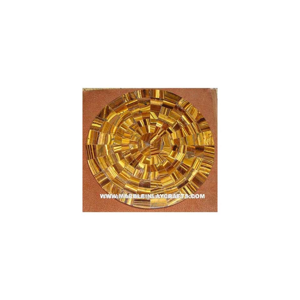 Tops de mesa con forma redonda y ojos de Tigre, piedra semipreciosa, tonos naturales