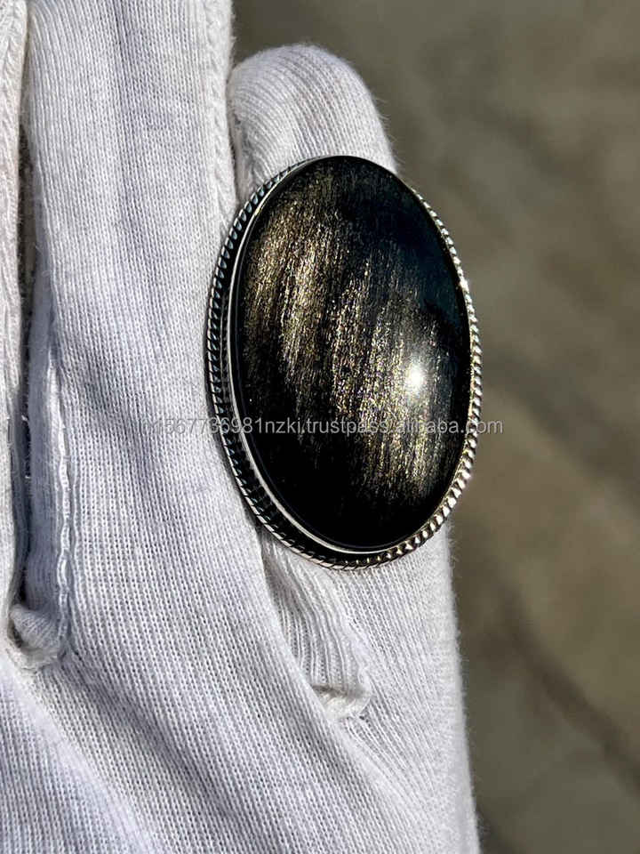 Nombre del producto:Anillo de Plata de Ley 925 obsidiana