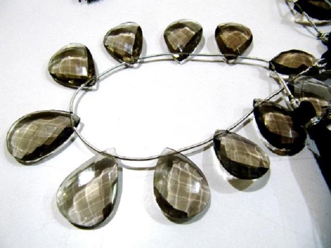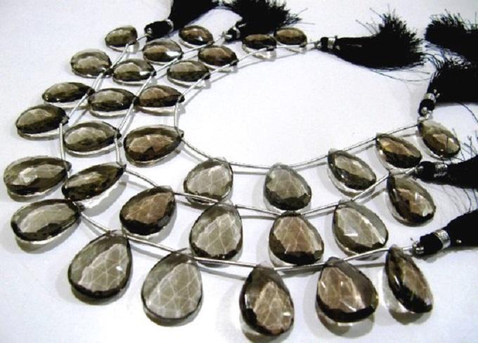 Cuentas facetadas de Briolette con forma de pera de cuarzo ahumado Natural, hebra de cuentas de 15x20mm, 8 pulgadas de largo, fabricación de joyas, cuentas de piedras preciosas superiores
