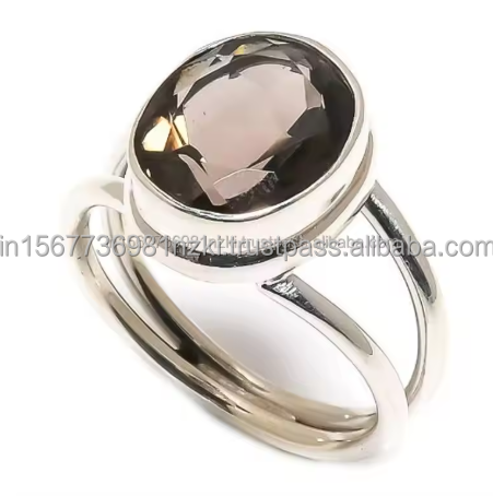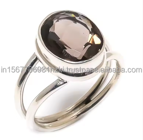 Nombre del producto:Anillo de Plata de Ley 925 con Cuarzo Ahumado