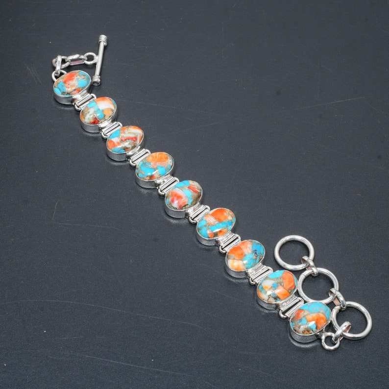 Palabra clave:Pulsera brillante de turquesa de ostra espinosa elaborada con piedras
