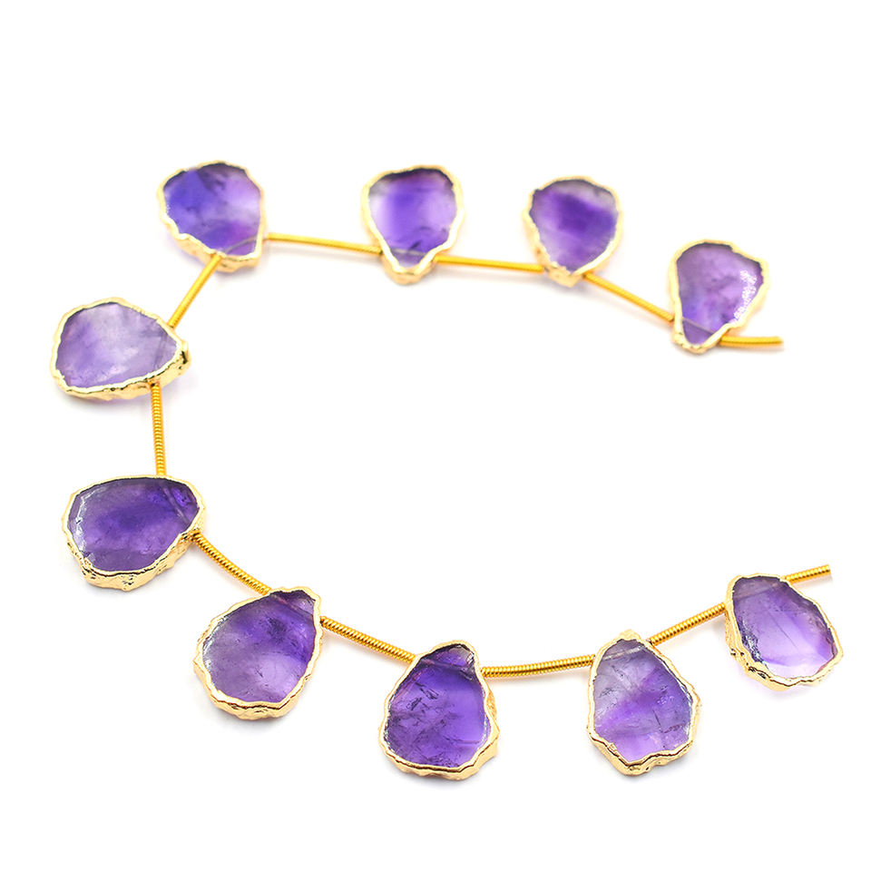 Nombre del Producto:Hilo de 10 cuentas de amatista perforadas lateralmente y chapadas en oro
