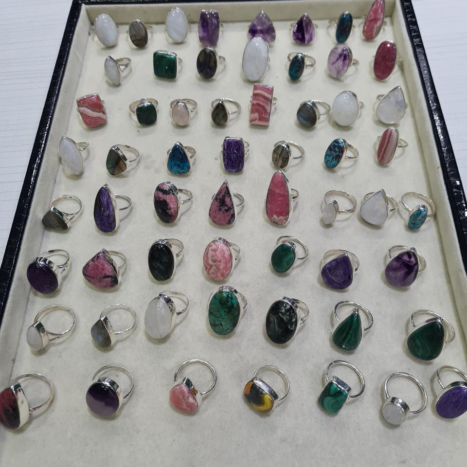 Anillo de cristal de piedra natural Joyería de cuarzo semipreciosa en diferentes tamaños para regalo