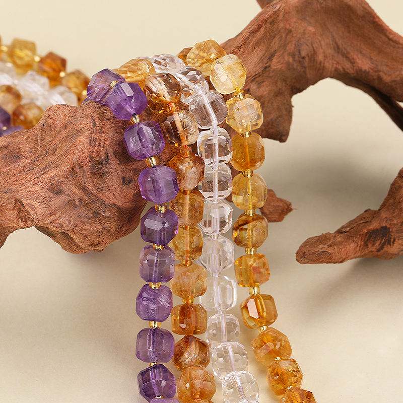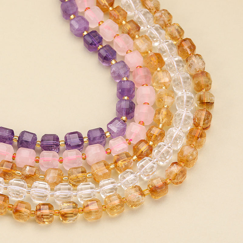 Cuentas sueltas de piedras preciosas naturales, cuentas de cubo de 8mm, amatista, citrino, Cuarzo Rosa, joyería Diy
