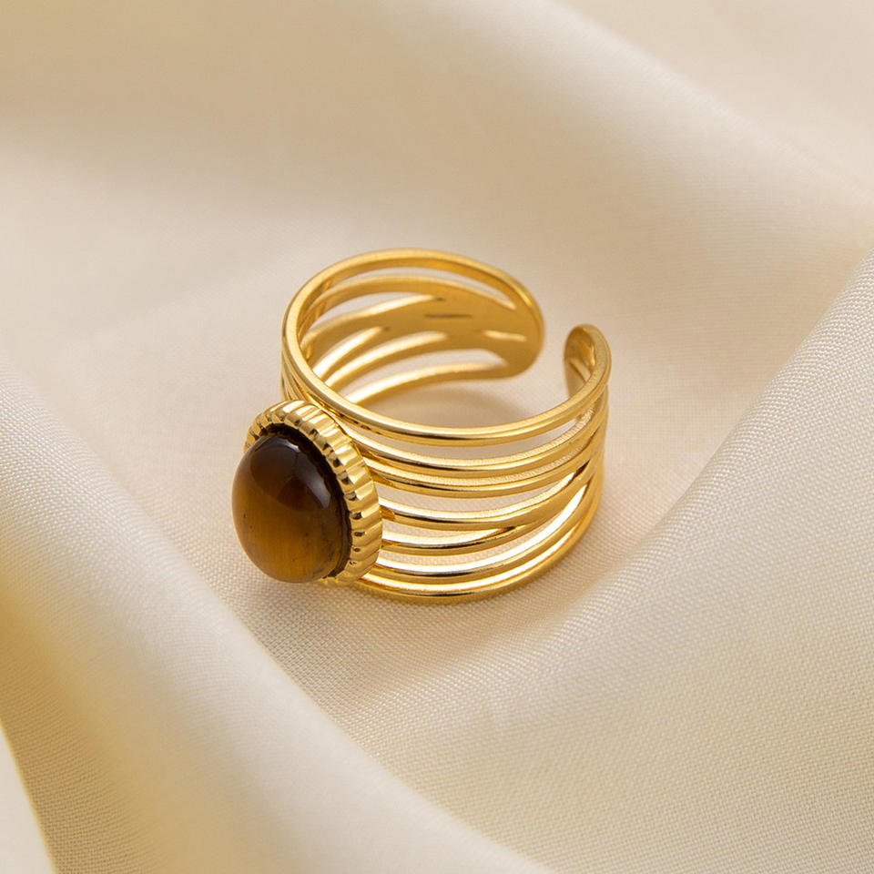 Anillo de Piedra Natural Ajustable con Forma Geométrica y Engaste de Bisel, Joyería de Moda Unisex, Regalo, Origen Yiwu JZ21103