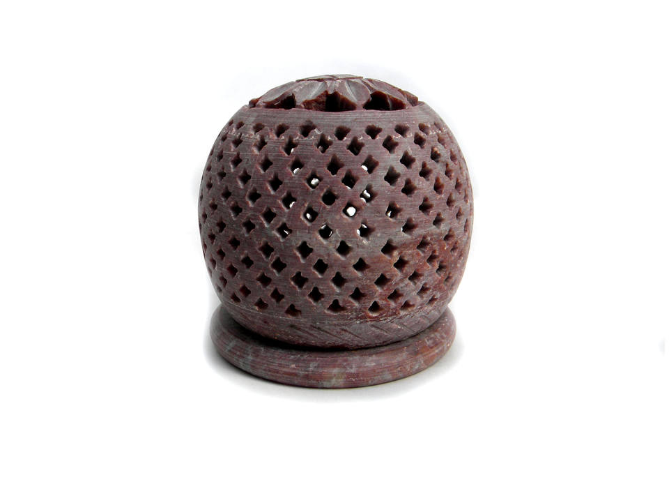 Candelabro de piedra Natural ovalada, soporte de piedra tallada con agujeros, diseño de vela, quemador de resina de incienso redondo con piedra Base