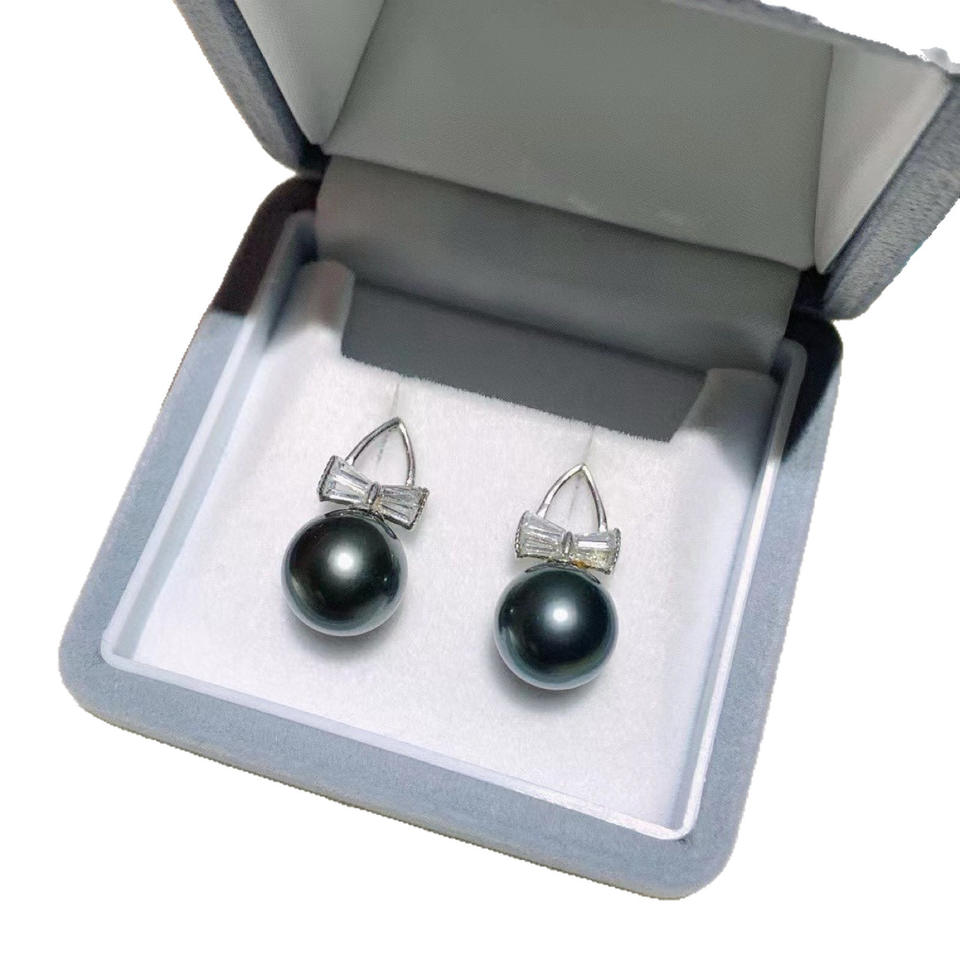 Pendientes Colgantes de Perlas Negras Naturales de Tahití de 9-10 mm, Joyería de Alta Gama con Fuerte Brillo y Apariencia Impecable, Plata de Ley 925