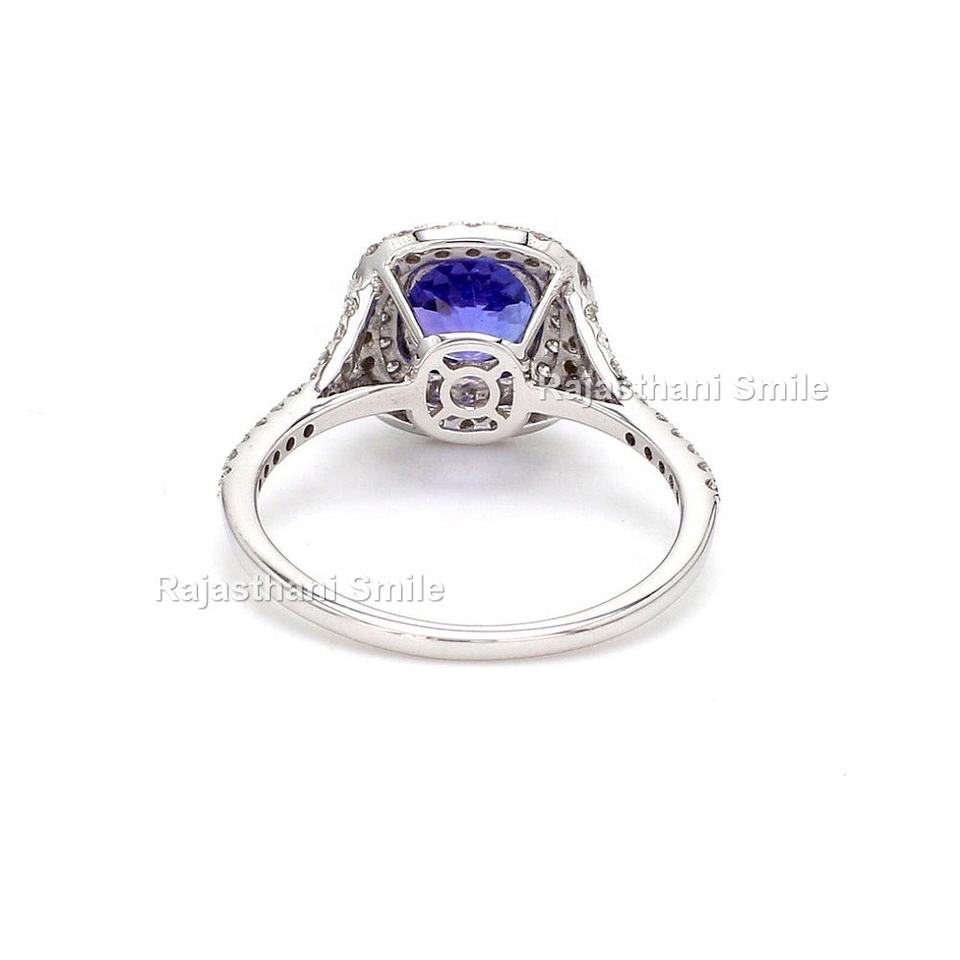 Tanzanita natural y diamantes 14K oro blanco sólido corte redondo piedra preciosa Halo anillo de compromiso 7mm Tamaño de piedra para boda o fiesta
