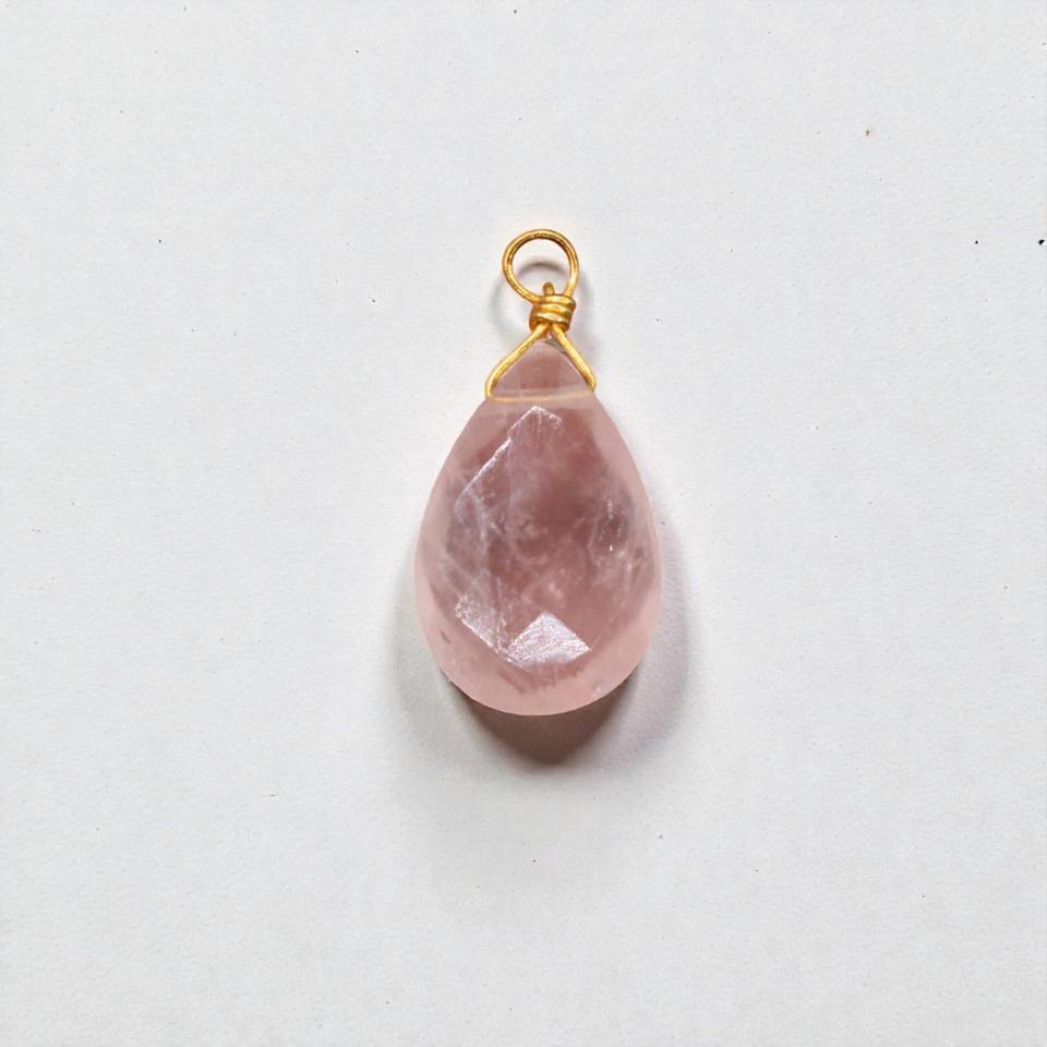 Colgante de Cuarzo Rosa Natural en Forma de Lágrima, Gema Facetada, Alambre Dorado, Amuleto para Fabricación de Joyas, Componente para Collar, Venta al por Mayor
