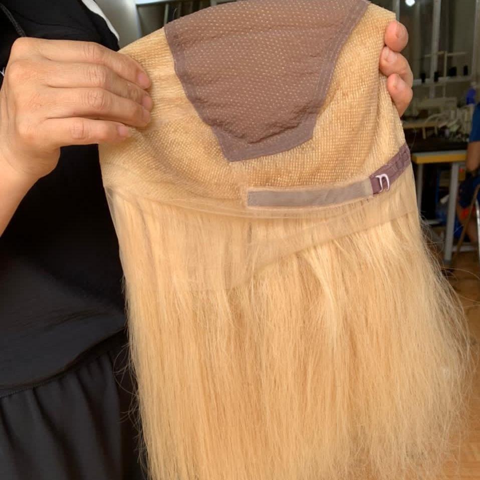 Proveedor vietnamita Estilista Extensiones de cabello humano real Textura natural Rubio Recto Longitud larga Cierre de encaje Pelucas frontales HD