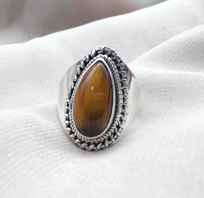 Anillo de piedras preciosas de ojo de tigre natural, joyería hecha a mano de Plata de Ley 925 para mujer, tamaño 6 34 EE. UU.