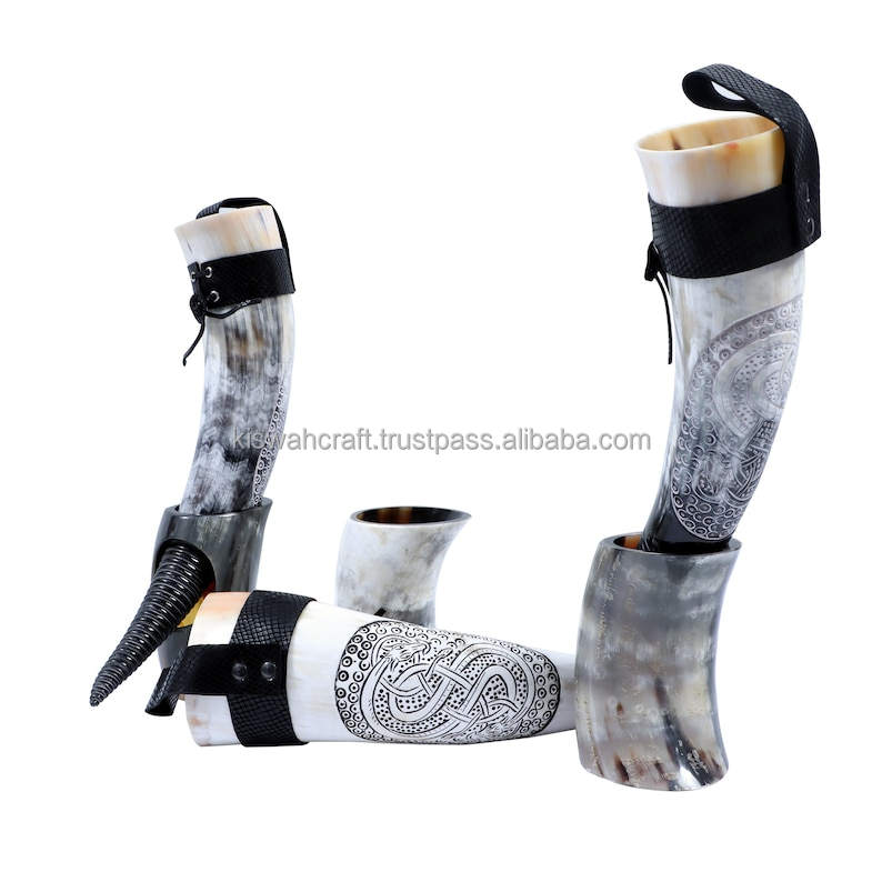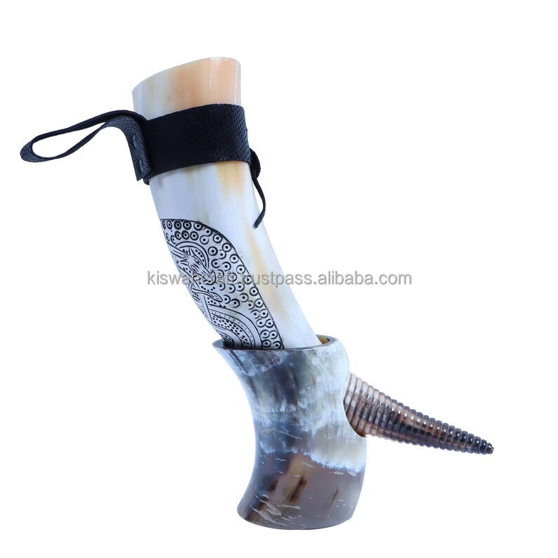 Cuerno para Beber Hecho a Mano, Diseño Vikingo Medieval con Grabado de Thor, Resistente al Agua, de Primera Calidad, Cuerno de Buey/Búfalo, Tendencia Natural