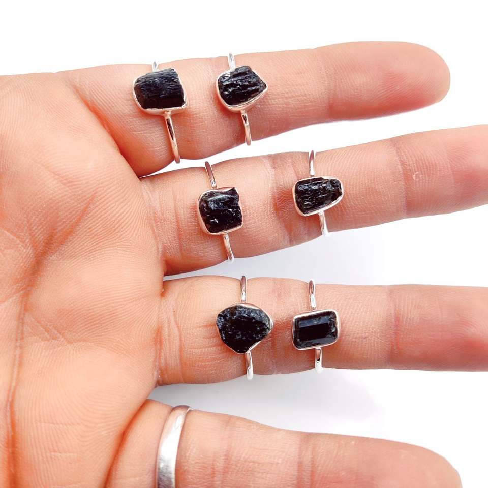 Anillo de Plata de Ley con Turmalina Natural en Bruto, Joyería de Moda para Bodas y Compromisos, Anillos de Promesa