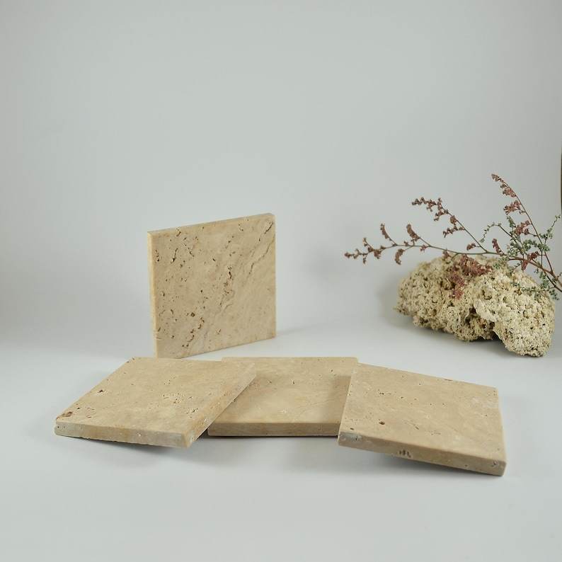 Juego de Posavasos de Travertino Natural, Posavasos de Piedra Hechos a Mano, Regalo de Inauguración de Casa, Decoración Elegante para el Hogar, Accesorios para Mesa de Centro