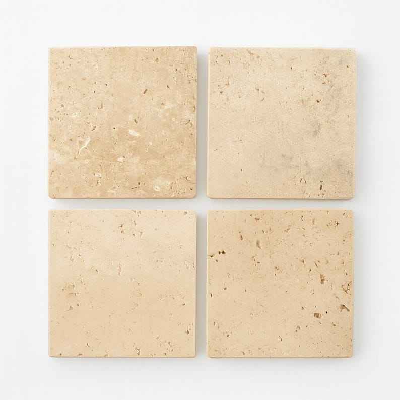 Posavasos de piedra travertino natural, conjunto rústico neutro para el hogar, posavasos de mármol hechos a mano, vajilla, decoración del hogar