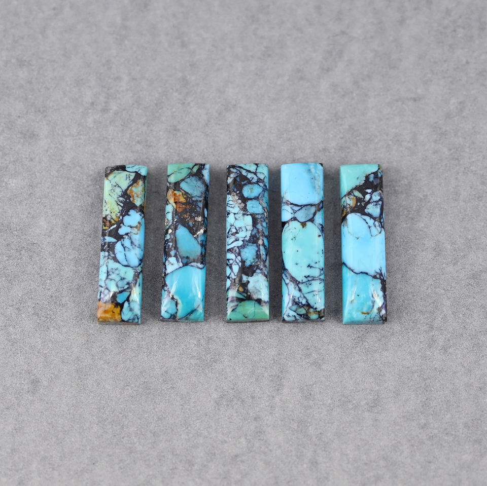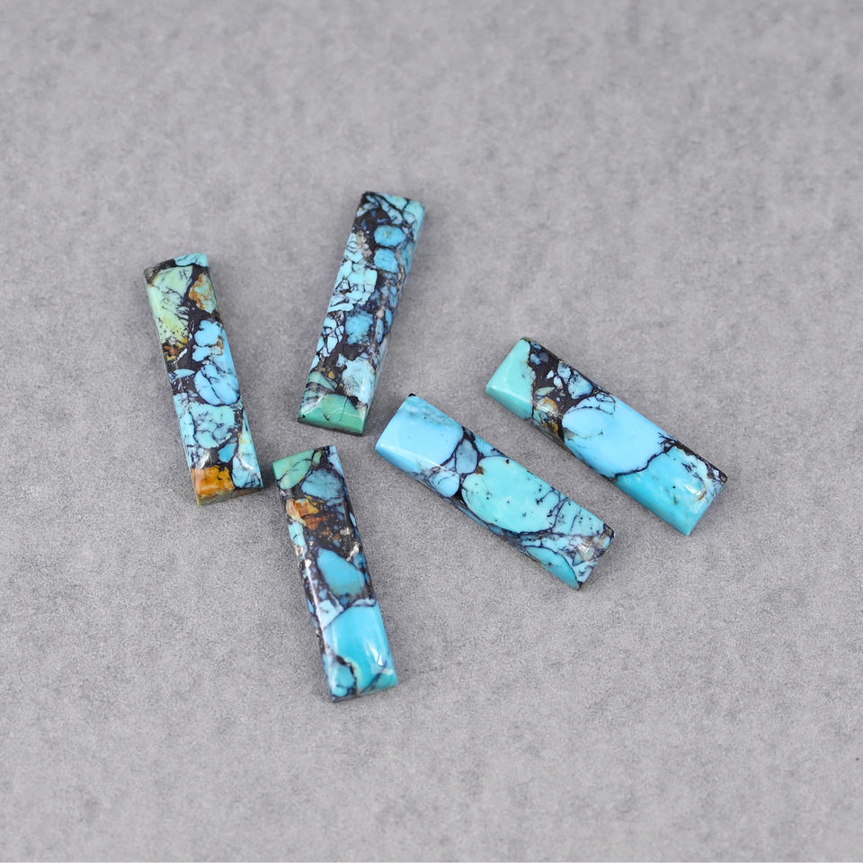 Turquesa natural de 6x23 mm, forma rectangular, base plana, alto brillo, cabujón de piedra preciosa suelta y lisa para la fabricación de collares con colgante de plata.