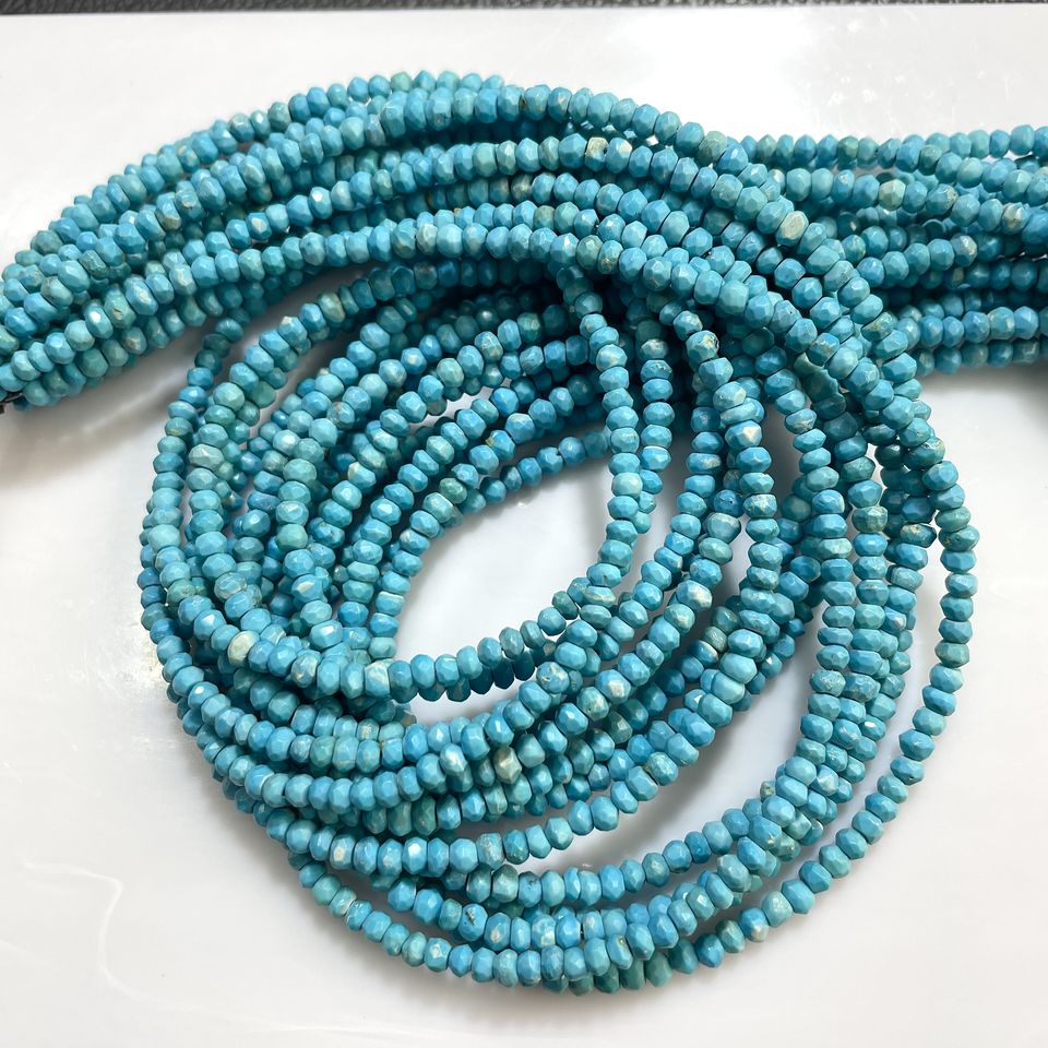Cuentas facetadas de turquesa natural con forma de Rondelle, cuentas diminutas de piedras preciosas reconstituidas para la fabricación de joyas
