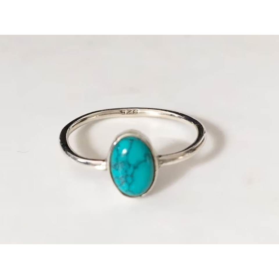 Anillo minimalista de turquesa natural para niñas, joyería de piedras preciosas de Plata de Ley 925, joyería india de plata fina, proveedores de boda