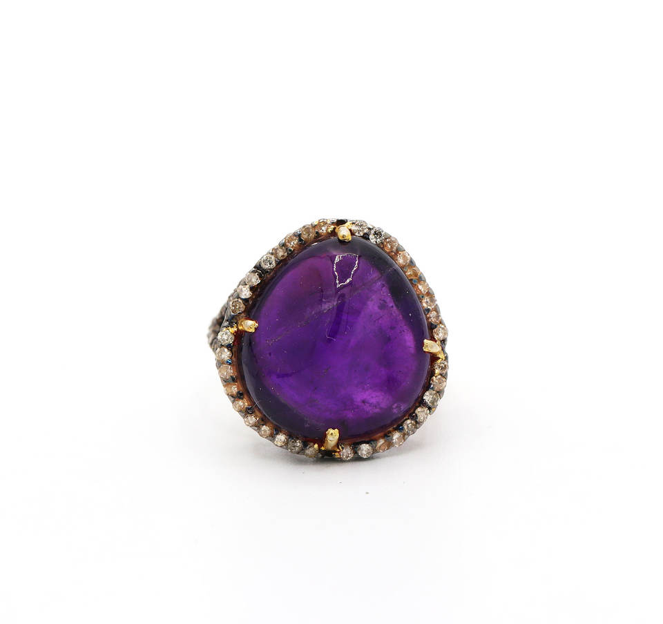 Amatista victoriana natural y anillo de diamante Plata de Ley 925 y oro anillo hecho a mano joyería para venta al por mayor