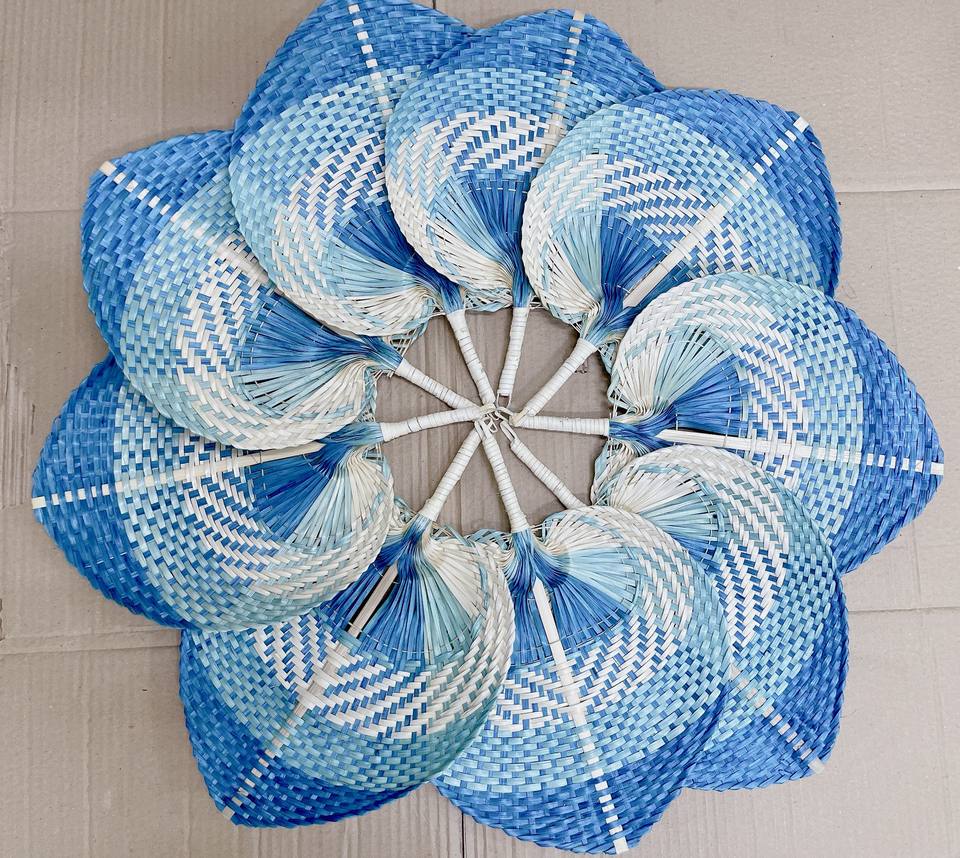 Ventilador de mano tejido artesanal de bambú natural de Vietnam ventiladores de ratán hechos a mano trenzados coloridos para fuente de alimentación Manual de refrigeración para hoteles