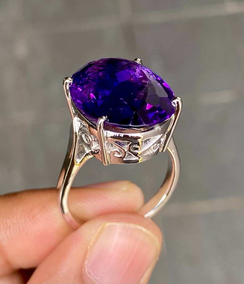 Keyword:Natural Violet Amethyst Elegant Ring Purple Gemstone Jewelry For Women