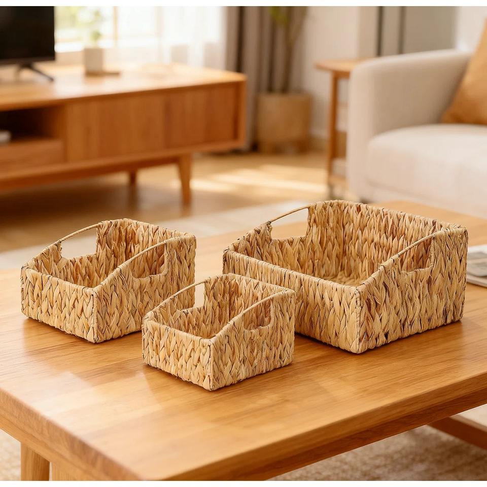 Cestas de almacenamiento de jacinto de agua natural:Tamaño: L: L16,3 x A11 x H6,7 M: L9,8 x A7,5 x H6 pulgadas