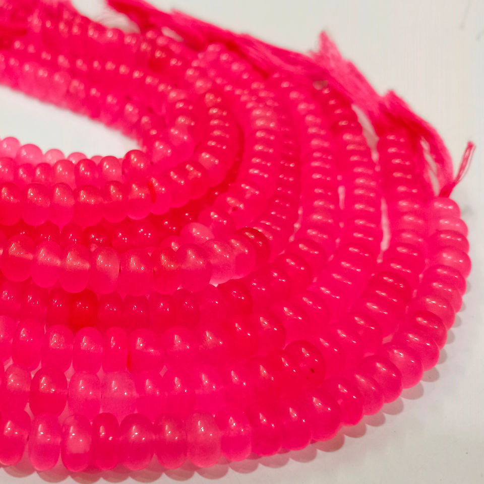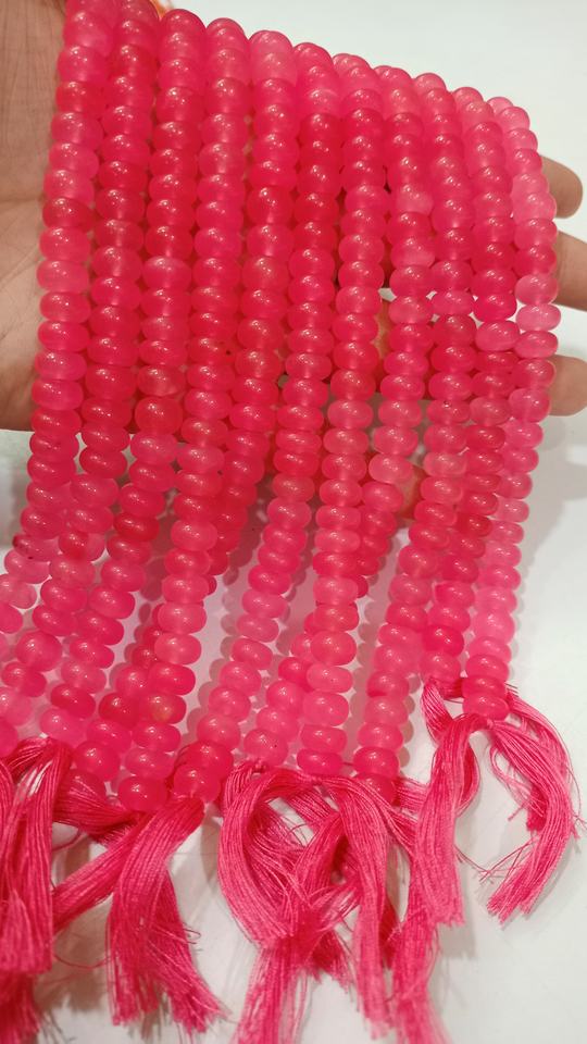 Cuentas de piedra Rondelle de Calcedonia Rosa sandía Natural, piedras preciosas lisas de 8mm para la fabricación de joyas, hebras largas de 8 pulgadas