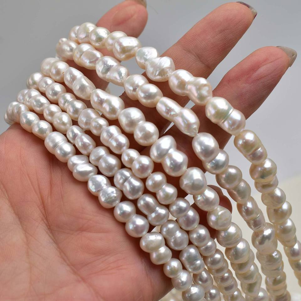 Cuentas de Perlas de Agua Dulce Naturales de Color Blanco, Forma Barroca, en Forma de 8, de 7-11-14 mm, Accesorios Semiterminados, Cuentas Sueltas para Collar de Perlas