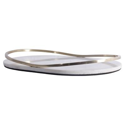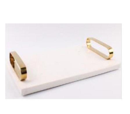 Bandeja de servicio de mármol blanco natural con mango de metal de latón dorado Diseño funerario Decoración para el hogar Plato y plato