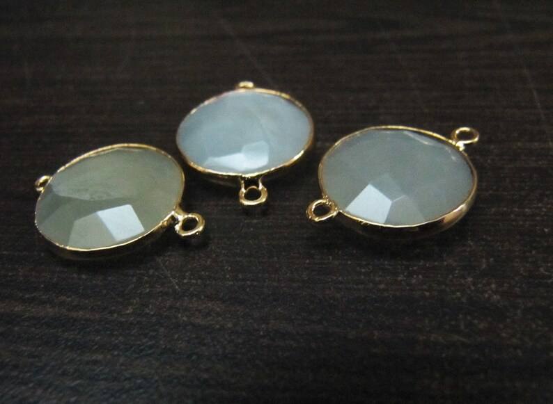 Conectores facetados con forma de moneda redonda de piedra lunar blanca Natural, conectores de bisel de doble bucle, dijes de conector de piedras preciosas de tamaño de 15 mm