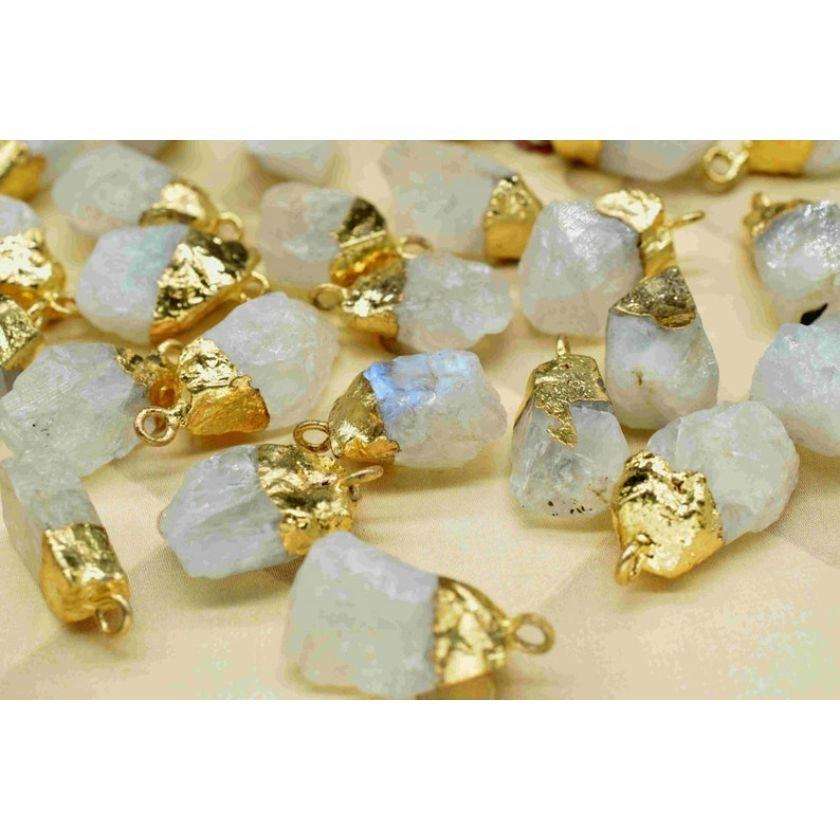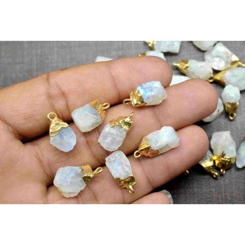 Piedra de Luna Arcoíris Blanca Natural en Bruto, Conector de Piedra de Nacimiento, Colgante de Alta Calidad con Efecto de Color, Bañado en Oro Vermeil, Gema de Junio
