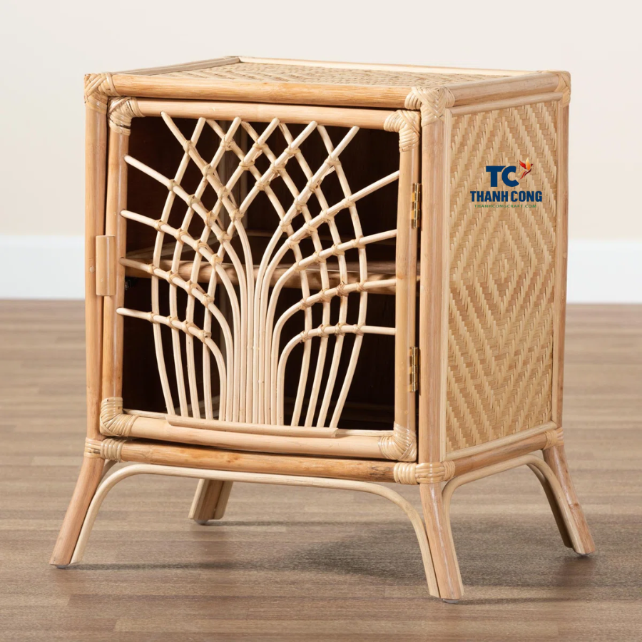 Mesita de noche de ratán de mimbre natural con estante y gabinete, mesa auxiliar de ratán hecha a mano, perfecta para decoración del hogar