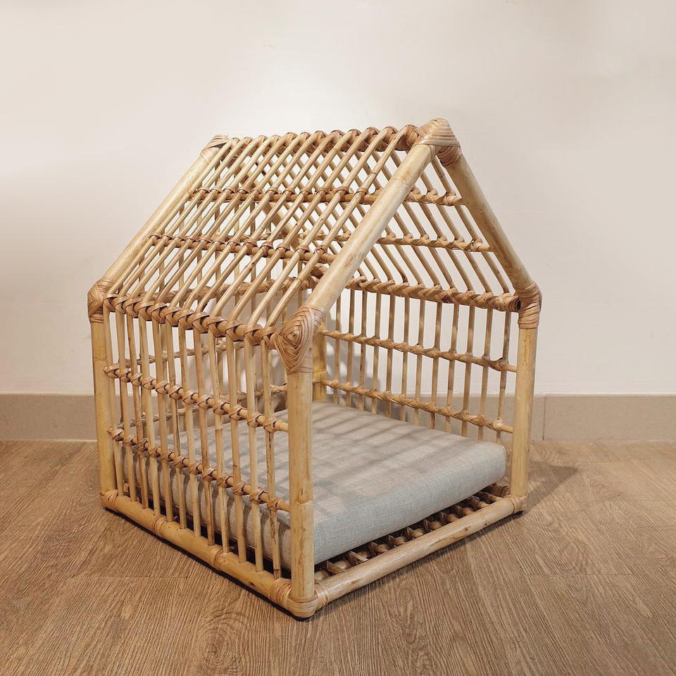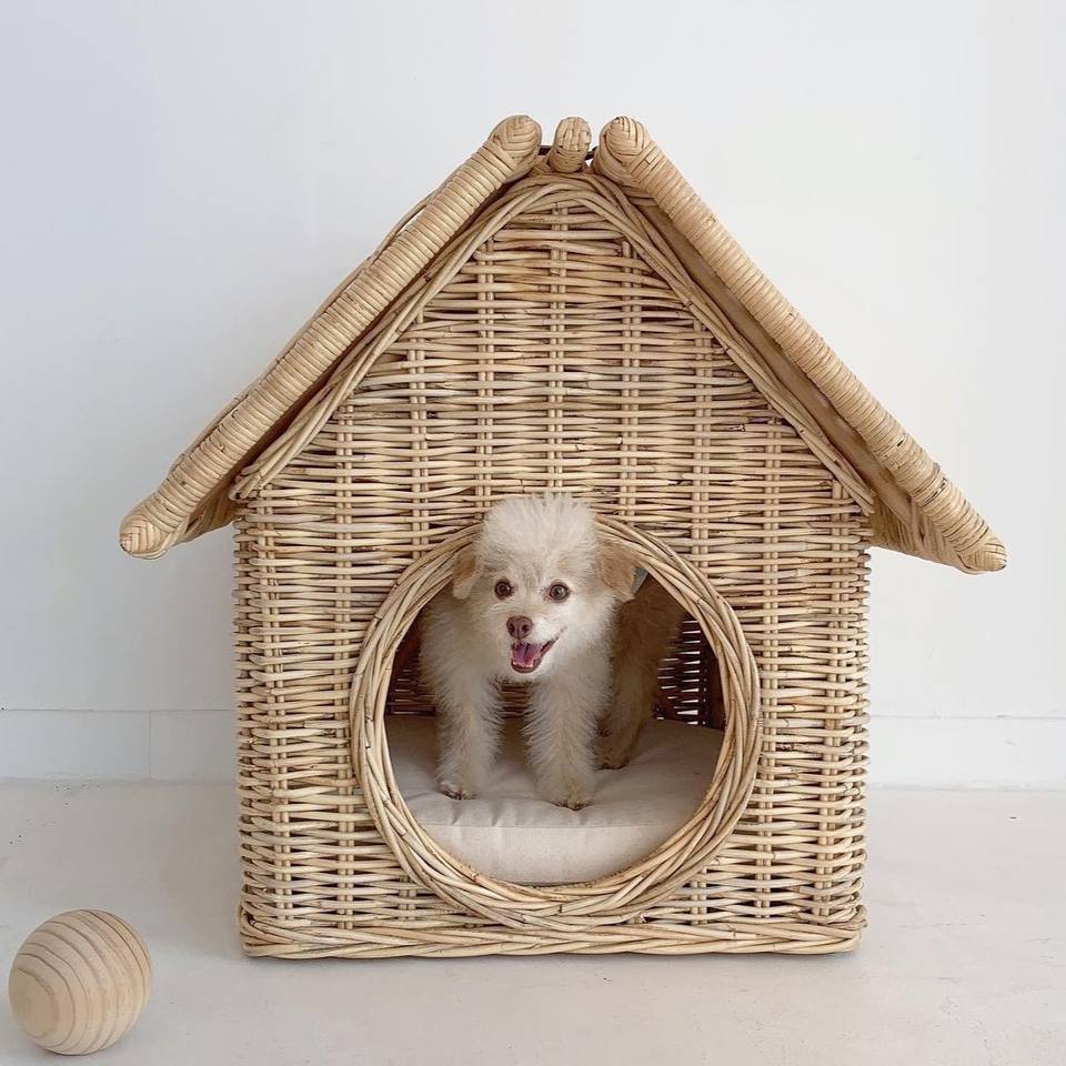 Cesta de Mimbre Natural Tejida para Mascotas, Perros y Gatos