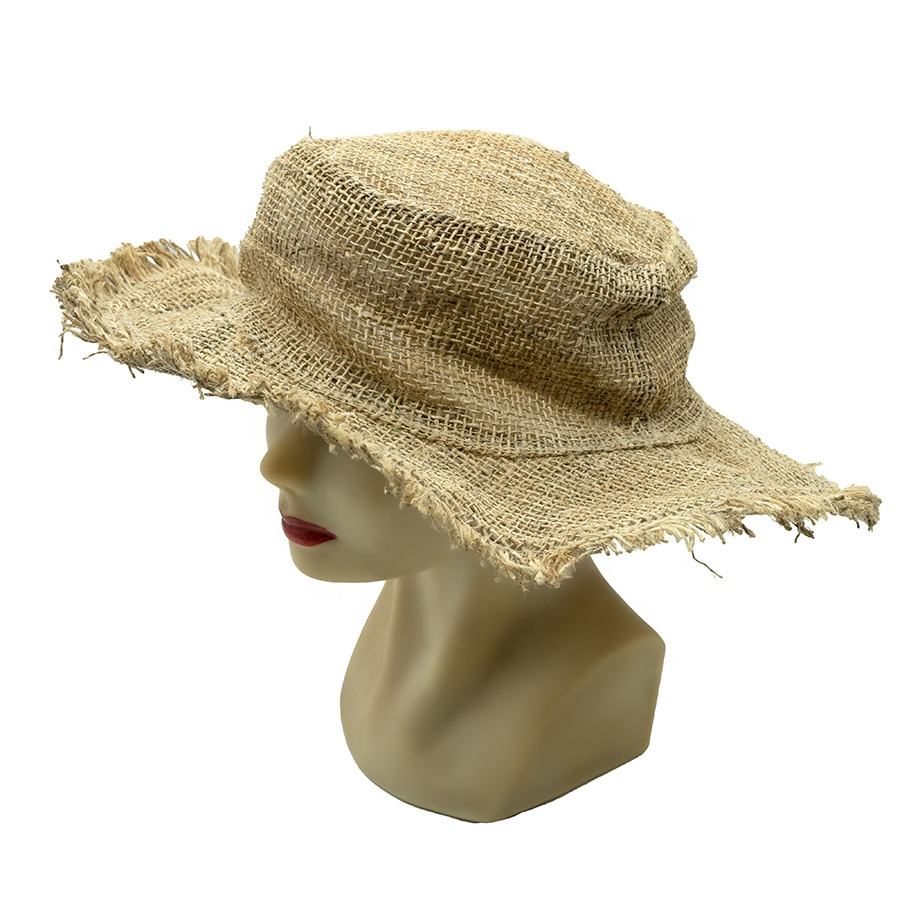 Sombrero de Flecos Tejido a Mano con Cáñamo del Himalaya Orgánico Natural, 100% Natural, 100% Hecho a Mano, Ecológico, Beige, Ala Ancha