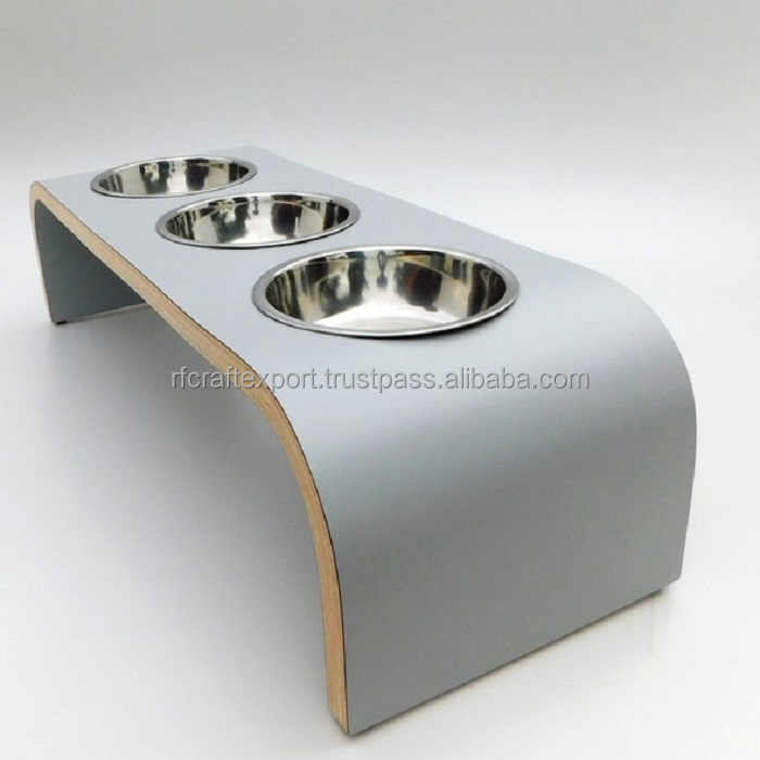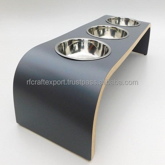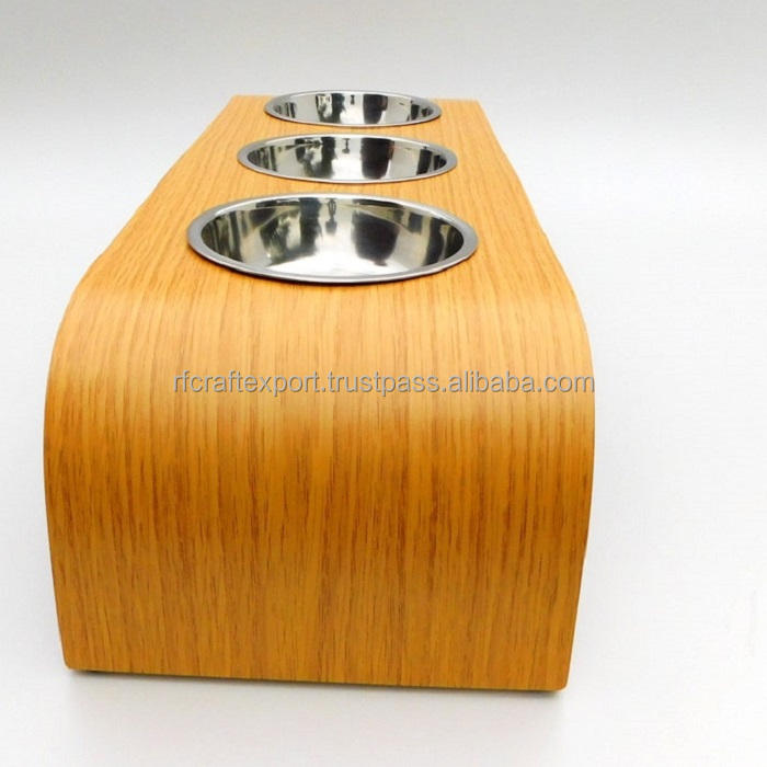 Estación de alimentación de madera natural para mascotas con cuencos de agua y comida triple para gatos y perros 3 platos para mascotas