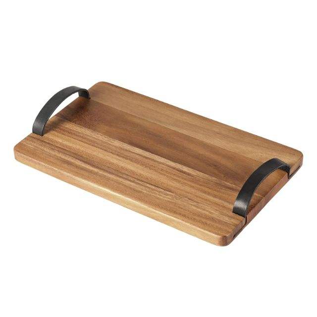Bandeja de madera natural de la porción con forma de cuero del rectángulo DE LA MANIJANombre del producto