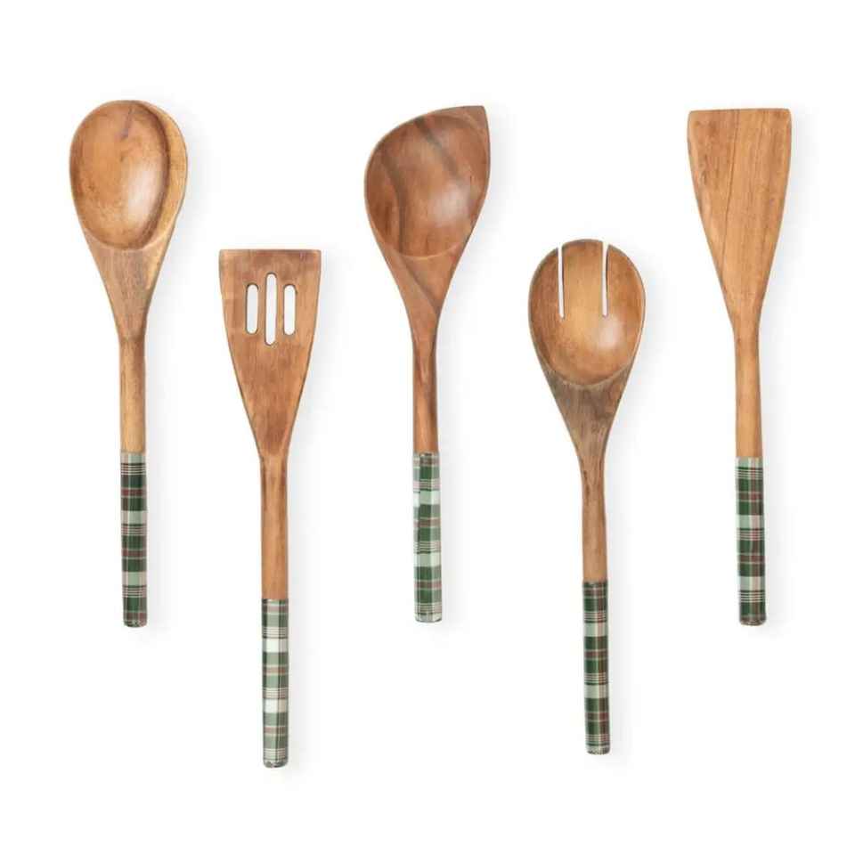 Juego de utensilios de cocina de madera natural, cuchara, espátula, volteador, cucharón, utensilios de cocina antiadherentes ecológicos