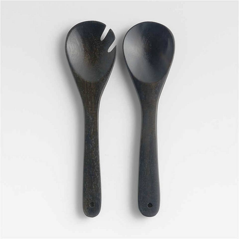 Juego de 2 Utensilios para Ensalada de Madera Natural con 2 Espátulas, Hechos a Mano, Sostenibles, Tamaño Pequeño