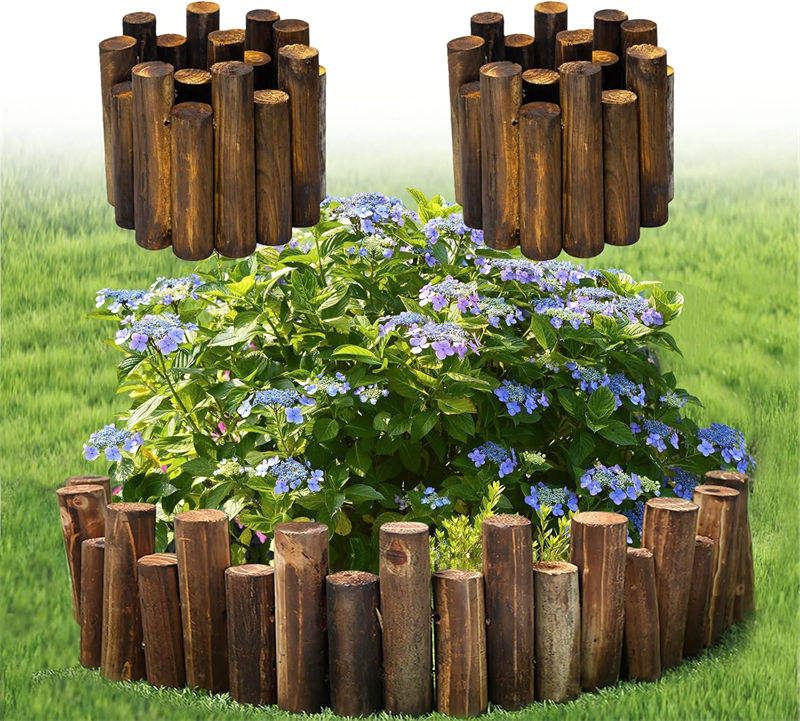 Valla de jardín de madera decorativa con borde de registro sólido de madera natural para barreras de cama de flores y cercado de paisaje